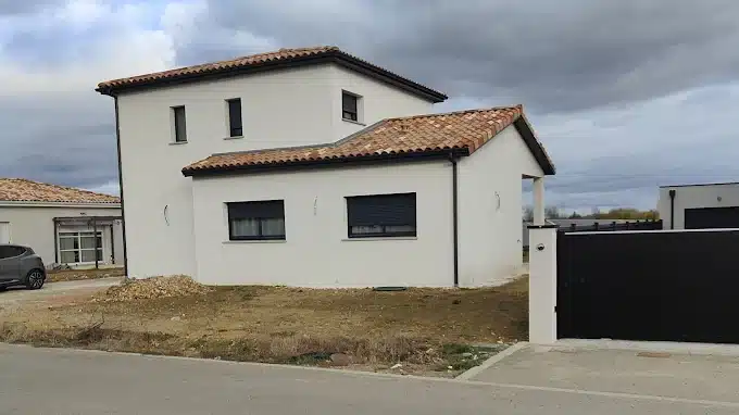 Mon client envisageait une habitation neuve articulant un bâtiment principal sur deux niveaux et une annexe de plain-pied, le tout implanté sur une parcelle vierge. Son souhait architectural ? Une approche contemporaine respectueuse des codes locaux. Tuiles canal obligent (nous sommes dans le Gers), menuiseries aluminium aux lignes épurées, portail coulissant automatisé. L'ensemble devait respirer la qualité et la longévité.